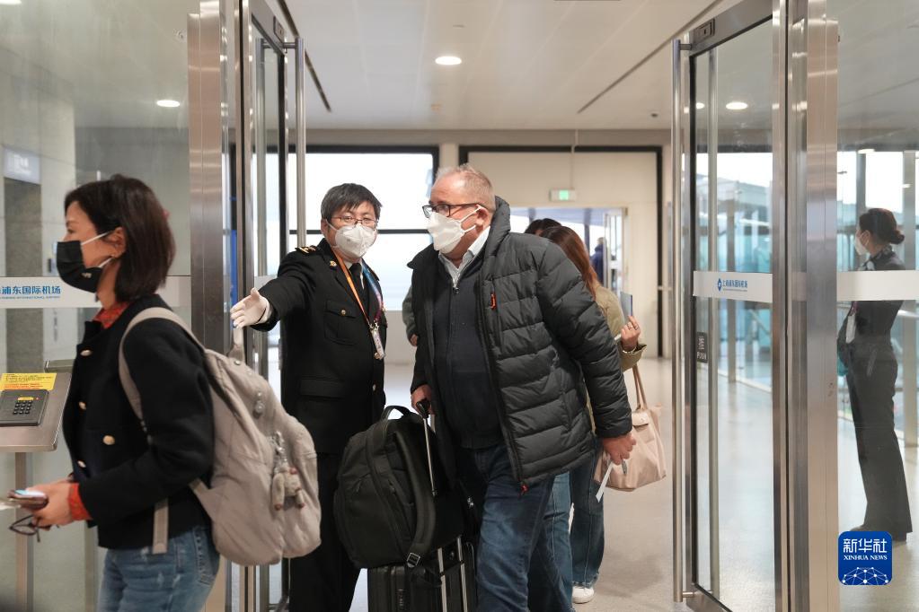 1月8日,入境旅客抵達上海浦東國際機場(chǎng)。