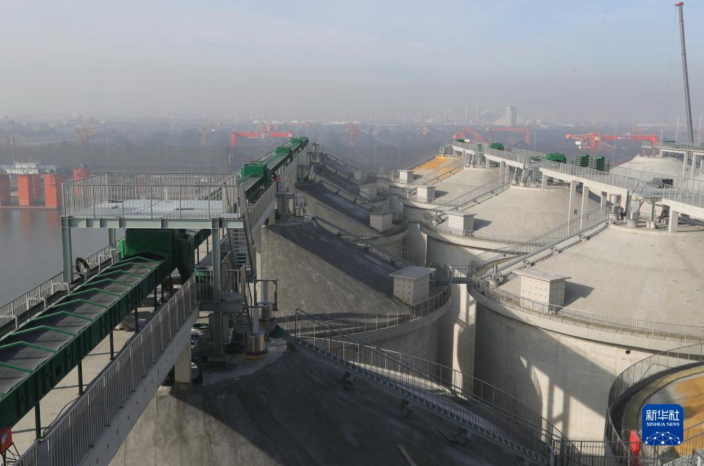1月8日,工人在中央儲備糧秦皇島直屬庫有限公司海港糧食儲備基地項目建設工地施工。