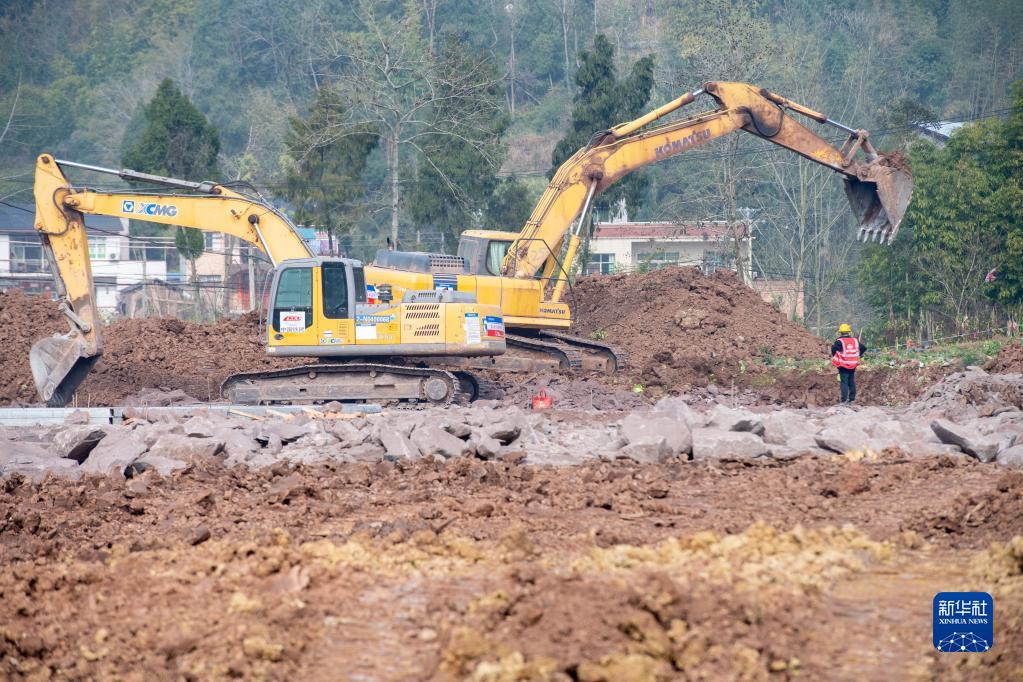 這是1月8日在重慶市大足區境內拍攝的成渝中線(xiàn)高鐵建設施工現場(chǎng)。