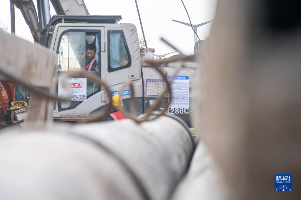 1月8日,工作人員在位于重慶市大足區境內的成渝中線(xiàn)高鐵建設施工現場(chǎng)作業(yè)。
