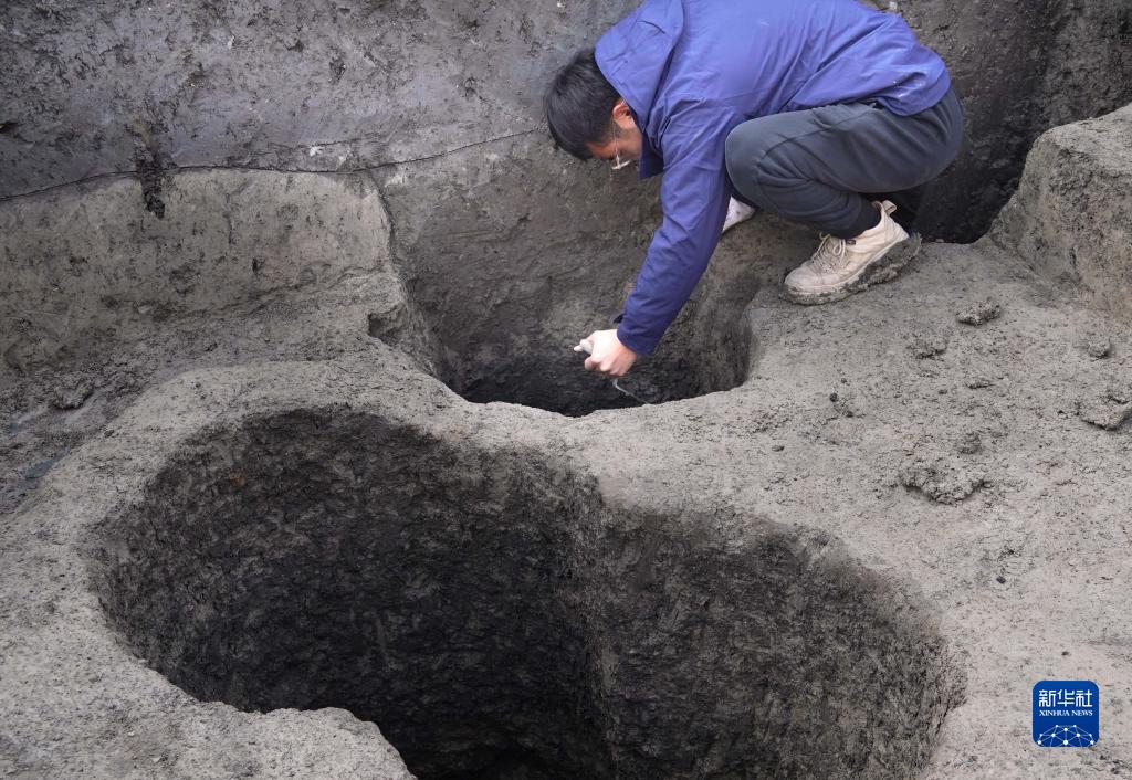 考古工作人員在河南商丘宋國故城遺址發(fā)掘現場(chǎng)清理宋代灰坑(1月6日攝)。