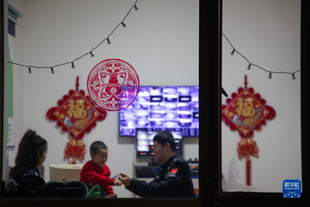 1月8日,史先強和妻子沈欣陪孩子在洛古河夫妻警務(wù)室里玩耍。