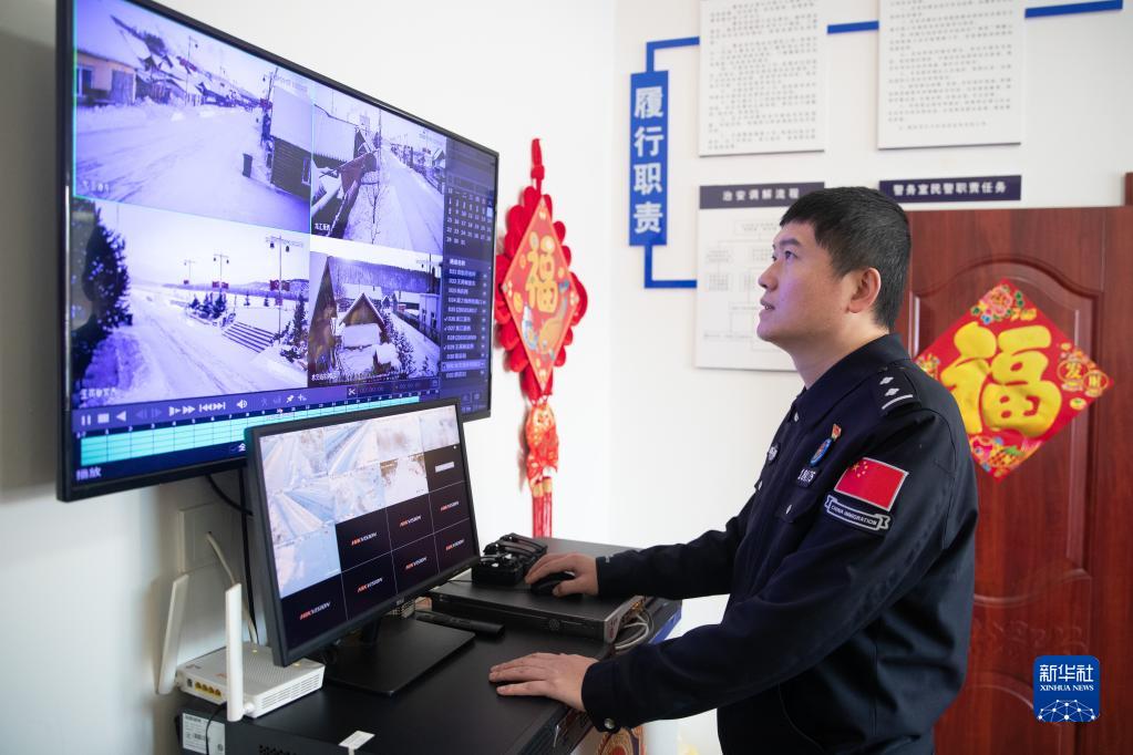 1月8日,史先強在洛古河夫妻警務(wù)室內查看村內的監控錄像。