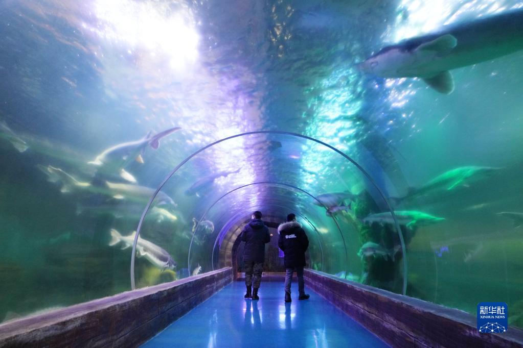 1月9日,參觀(guān)者在撫遠市魚(yú)博館參觀(guān)。