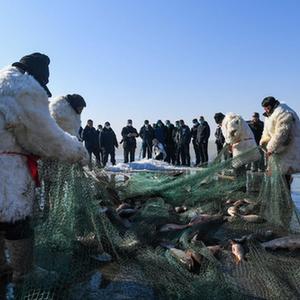 當日,內蒙古呼和浩特市土默特左旗哈素海首屆冬捕節暨冰雪旅游季系列活動(dòng)開(kāi)幕。