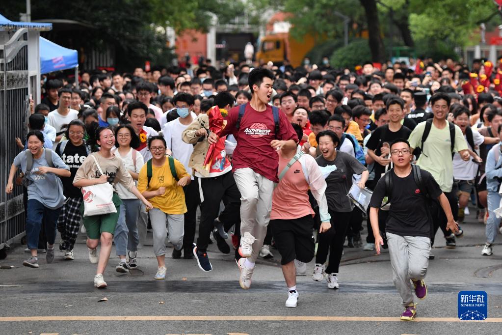 2022年6月9日,湖南省長(cháng)沙市一中考點(diǎn)的考生在高考結束后跑出考場(chǎng)。