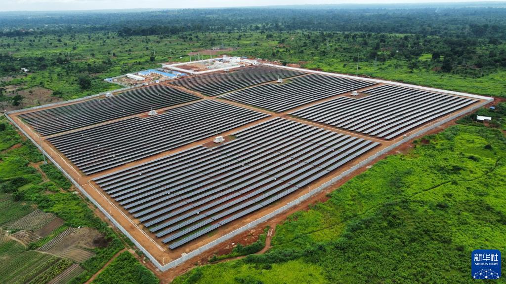 這是2022年6月2日在中非共和國首都班吉附近的賓博市拍攝的該國首座光伏電站——薩卡伊光伏電站。這一由中國企業(yè)承包的項目極大緩解了班吉市的用電難。