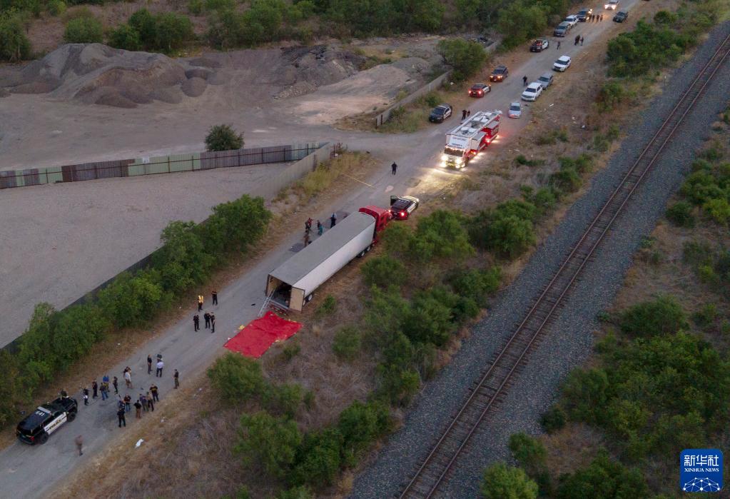2022年6月27日,工作人員在美國得克薩斯州圣安東尼奧市發(fā)現一輛被棄的貨車(chē),車(chē)內53名移民死亡。這是美國近年來(lái)最嚴重的邊境人口走私致死事件,死者來(lái)自墨西哥、危地馬拉、洪都拉斯和薩爾瓦多。