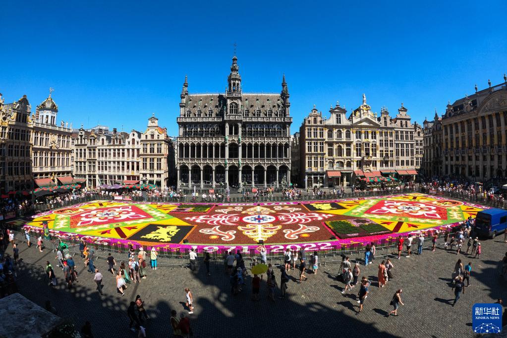 2022年8月12日,民眾在比利時(shí)布魯塞爾大廣場(chǎng)參觀(guān)“鮮花地毯”。受新冠疫情的影響,本應于2020年舉辦的第22屆“鮮花地毯”節延期至2022年舉行。