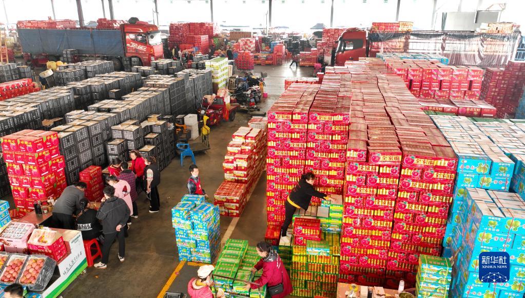 春節臨近,廣西柳州市各水果批發(fā)市場(chǎng)里一派繁忙景象,隨處可見(jiàn)工人裝卸水果的忙碌身影,商家籌備貨源,滿(mǎn)足節日市場(chǎng)供應。