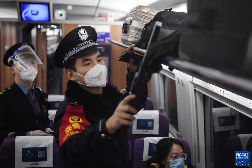 在12個(gè)半小時(shí)的動(dòng)車(chē)運行時(shí)間里,白旭偉穿梭于各節車(chē)廂,仔細查看車(chē)廂重點(diǎn)部位、耐心回答旅客咨詢(xún)、對重點(diǎn)旅客進(jìn)行詢(xún)問(wèn)檢查、和列車(chē)工作人員一起疏導春運客流……白旭偉和所有乘警一樣,在千里鐵道線(xiàn)上默默守護著(zhù)旅客的平安出行。