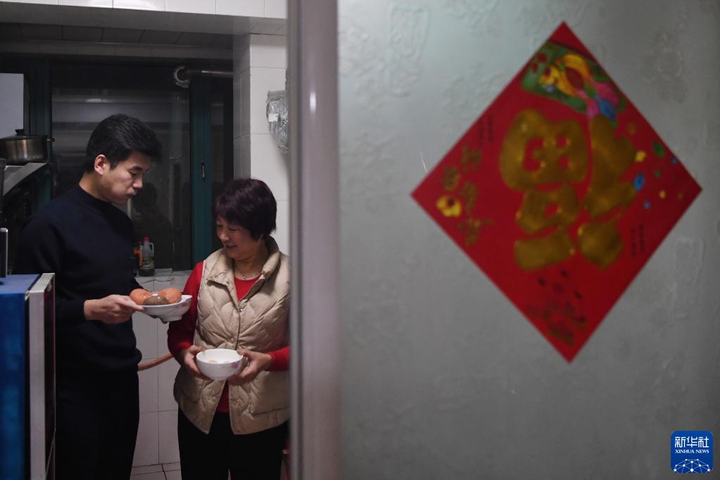1月9日清晨,白旭偉(左)在家中和母親一起準備早飯。