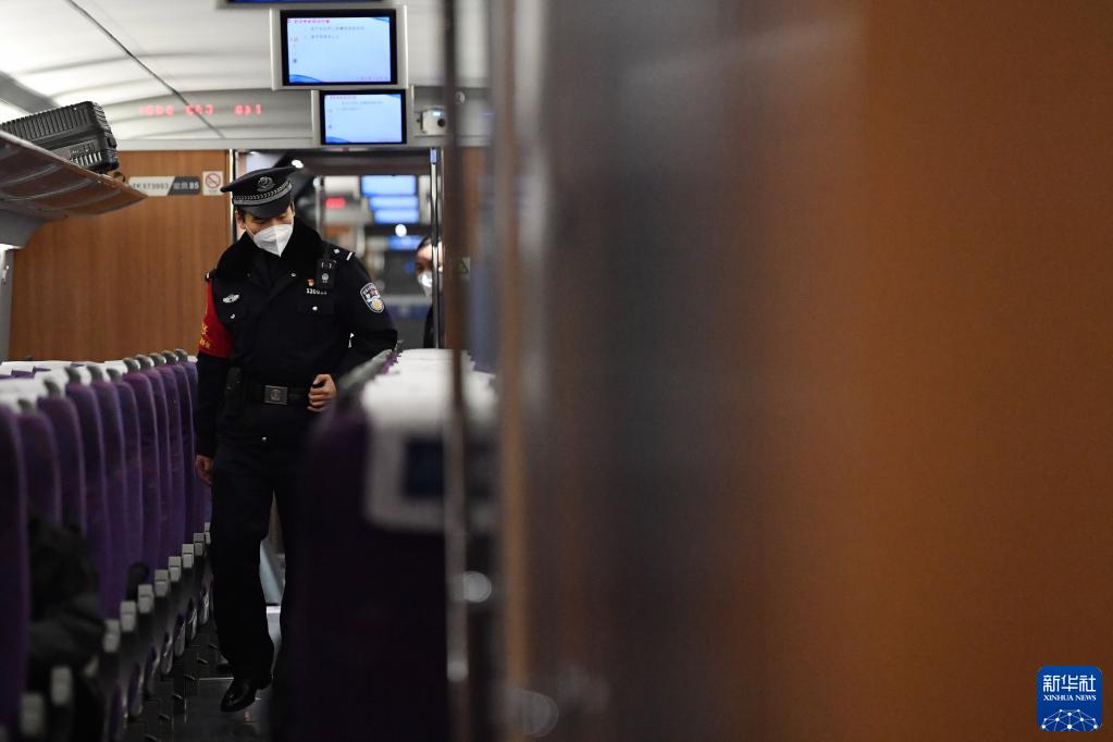 在12個(gè)半小時(shí)的動(dòng)車(chē)運行時(shí)間里,白旭偉穿梭于各節車(chē)廂,仔細查看車(chē)廂重點(diǎn)部位、耐心回答旅客咨詢(xún)、對重點(diǎn)旅客進(jìn)行詢(xún)問(wèn)檢查、和列車(chē)工作人員一起疏導春運客流……白旭偉和所有乘警一樣,在千里鐵道線(xiàn)上默默守護著(zhù)旅客的平安出行。