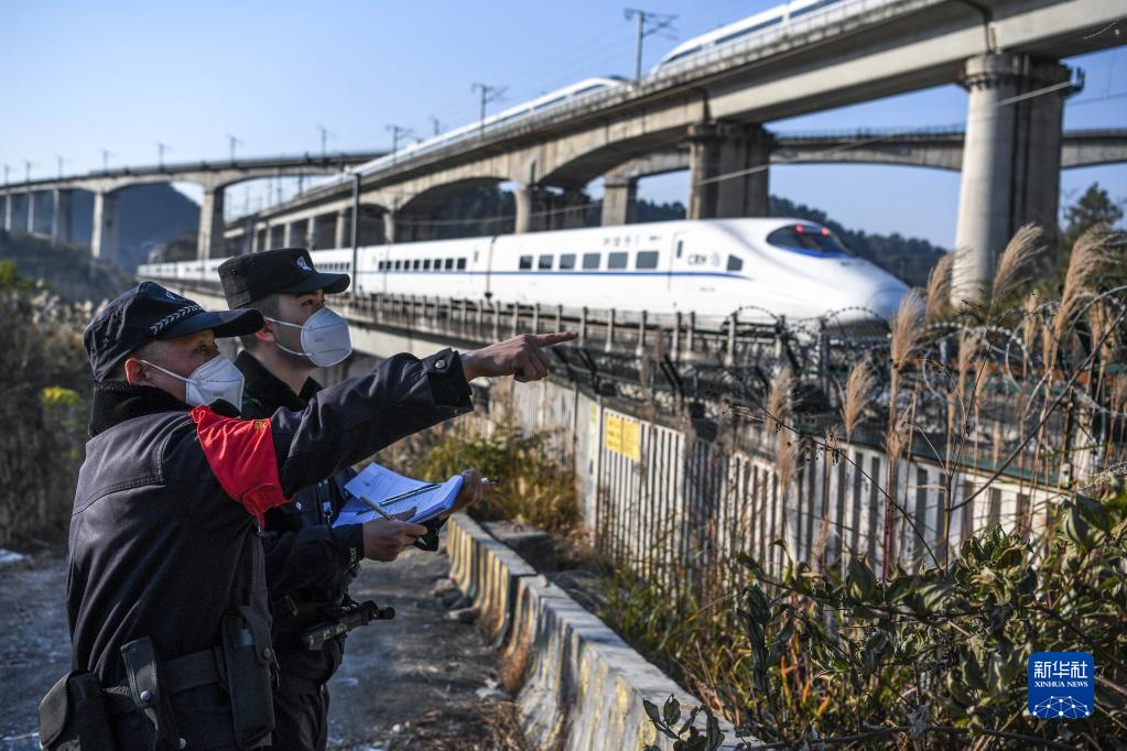 1月8日,鐵路警察王云(左)和謝源在鐵路沿線(xiàn)進(jìn)行線(xiàn)路安全巡查。