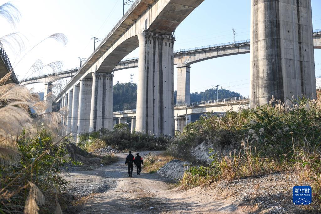 1月8日,鐵路警察王云(右)和謝源在鐵路沿線(xiàn)進(jìn)行線(xiàn)路安全巡查。