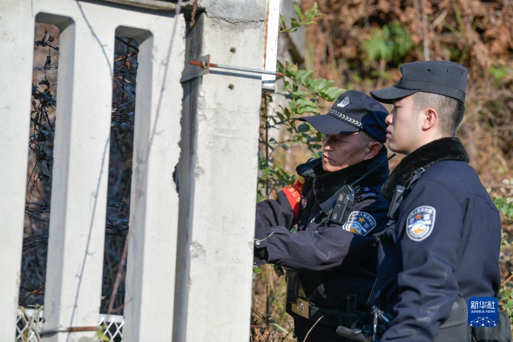 1月8日,鐵路警察王云(左)和謝源在鐵路沿線(xiàn)進(jìn)行鐵路附屬設施安全巡查。