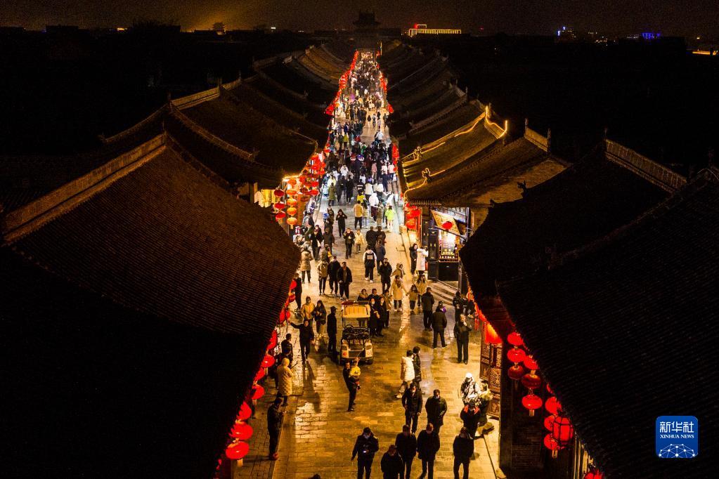 這是2022年2月7日拍攝的平遙古城一角(無(wú)人機照片)。春節期間,山西省晉中市平遙古城舉辦2022“我們的節日·春節——平遙中國年”活動(dòng),吸引各地游客前來(lái)參觀(guān)。