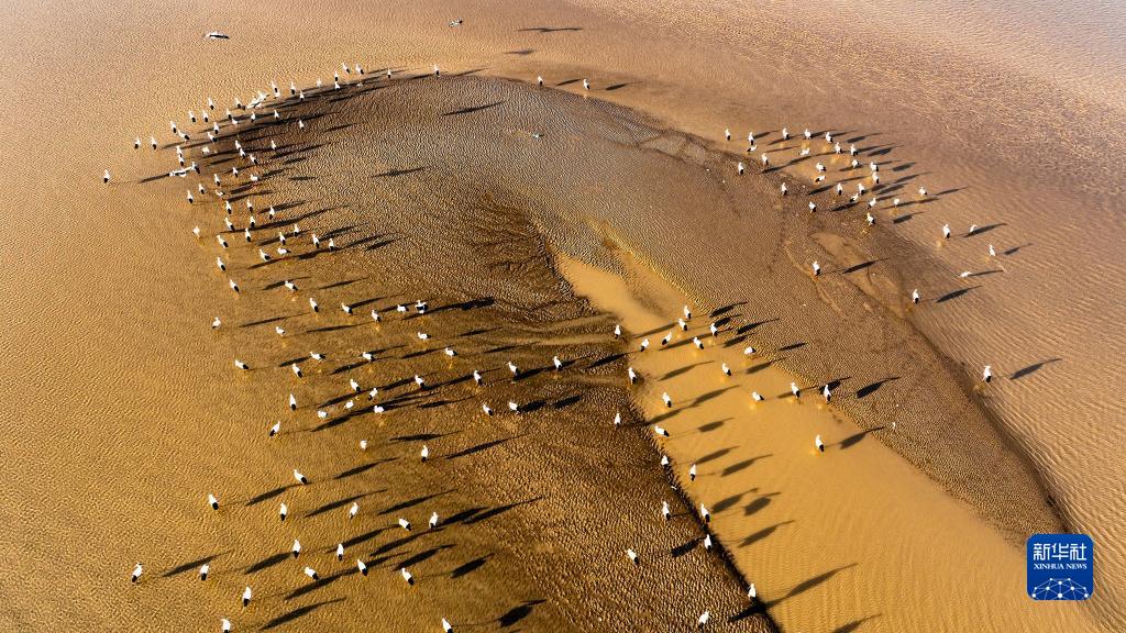這是2022年3月2日在山東黃河三角洲國家級自然保護區拍攝的東方白鸛(無(wú)人機照片)。