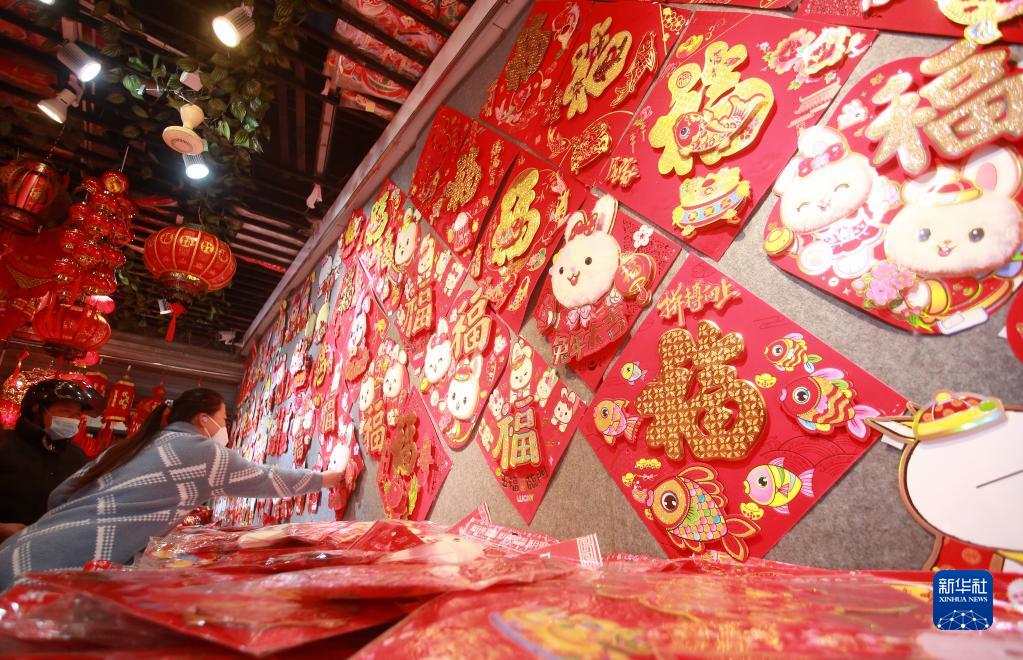 1月9日,在江蘇省揚州市一處小商品市場(chǎng),居民在選購節慶飾品。新華社發(fā)(孟德龍 攝)