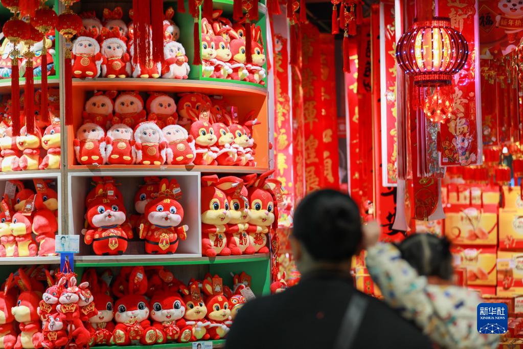 1月9日,居民在貴州省從江縣一處年貨市場(chǎng)選購節慶飾品。新華社發(fā)(羅京來(lái) 攝)