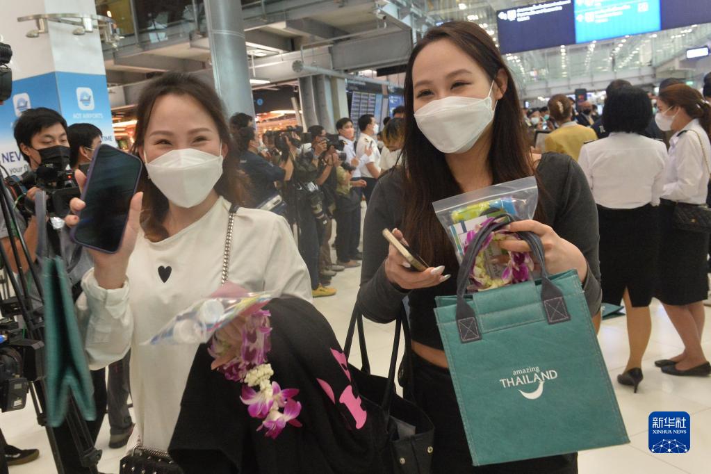 當日,泰國素萬(wàn)那普機場(chǎng)舉行儀式歡迎中國出入境政策調整后首個(gè)中國赴泰國航班旅客,泰國副總理兼衛生部長(cháng)阿努廷到現場(chǎng)迎接。該航班來(lái)自廈門(mén),共搭載269名旅客。新華社發(fā)(拉亨攝)