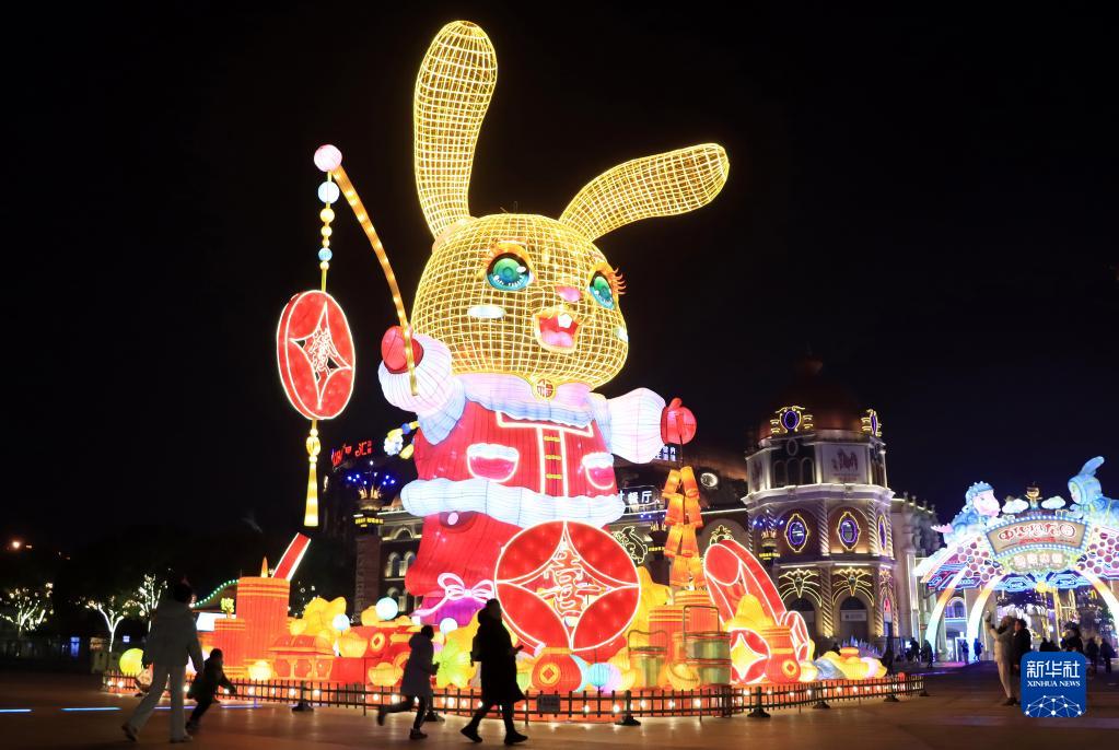 1月9日,在江蘇省常州市,市民在“2023常州燈會(huì )”現場(chǎng)觀(guān)賞巨型生肖兔燈。