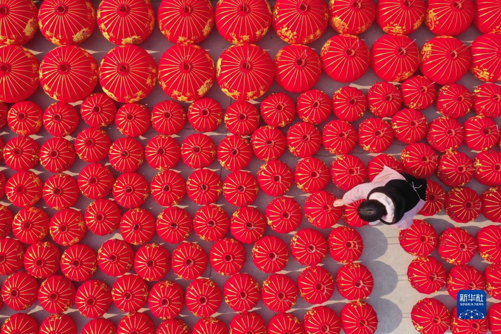 春節臨近,吉祥喜慶的大紅燈籠日益走俏,河南省焦作市溫縣的燈籠作坊內一派紅紅火火的忙碌景象,村民們加緊趕制訂單,供應節日市場(chǎng)。