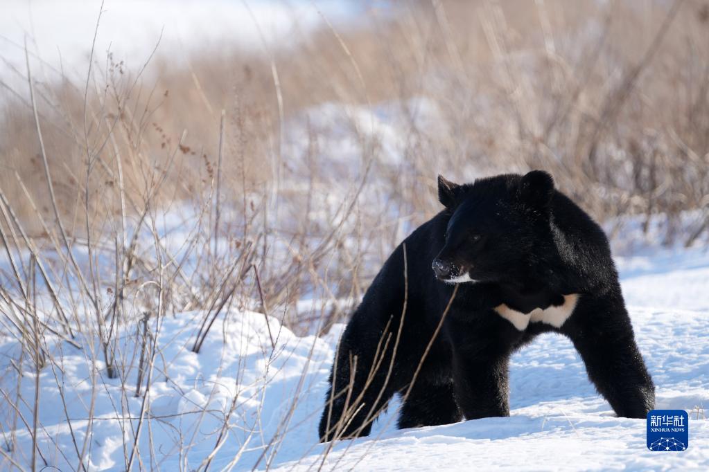 1月10日,黑熊在“探秘野熊園”內活動(dòng)。