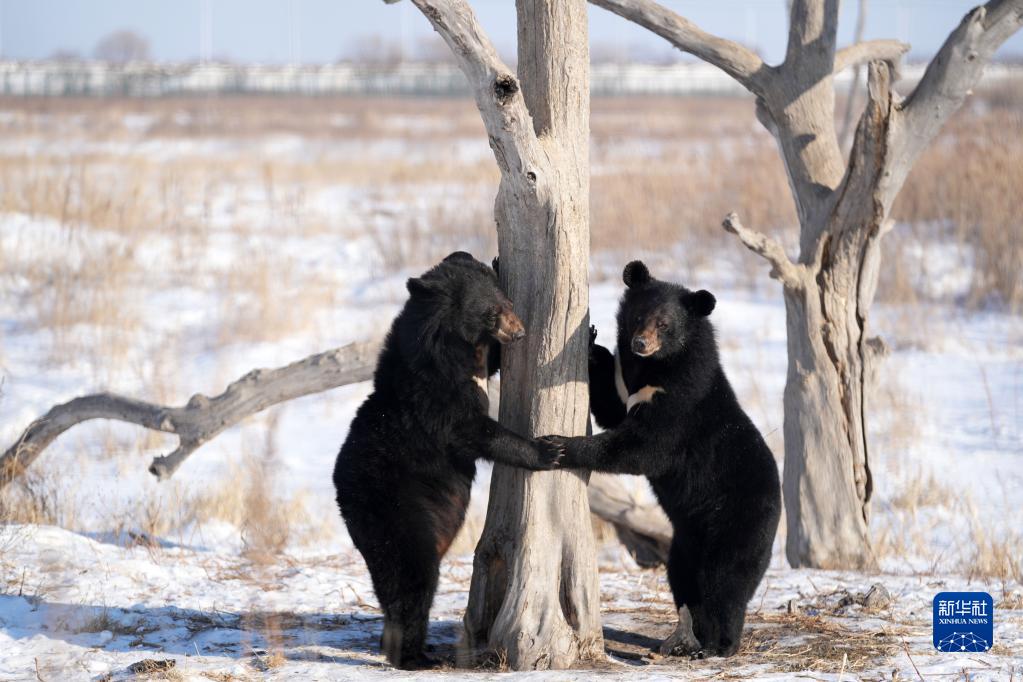1月10日,黑熊在“探秘野熊園”內活動(dòng)。