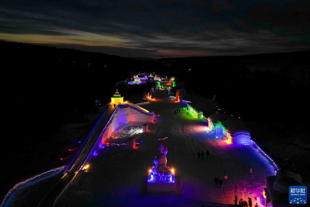這是1月7日拍攝的漠河市北極村冰雪童話(huà)世界夜景(無(wú)人機照片)。