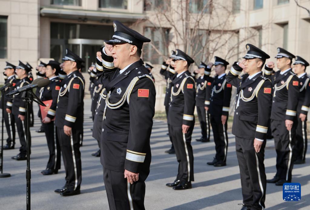 1月10日上午10時(shí),公安部舉行升警旗儀式慶祝第三個(gè)中國人民警察節。部機關(guān)干部代表整齊列隊,向中國人民警察警旗莊重敬禮,齊聲高唱中國人民警察警歌,重溫公安機關(guān)人民警察誓詞。