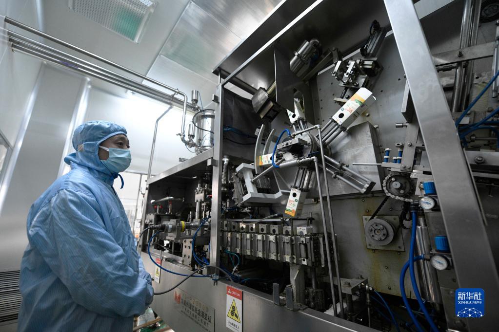 1月10日,工人在圍場(chǎng)縣一家沙棘深加工企業(yè)的沙棘飲品灌裝車(chē)間內作業(yè)。