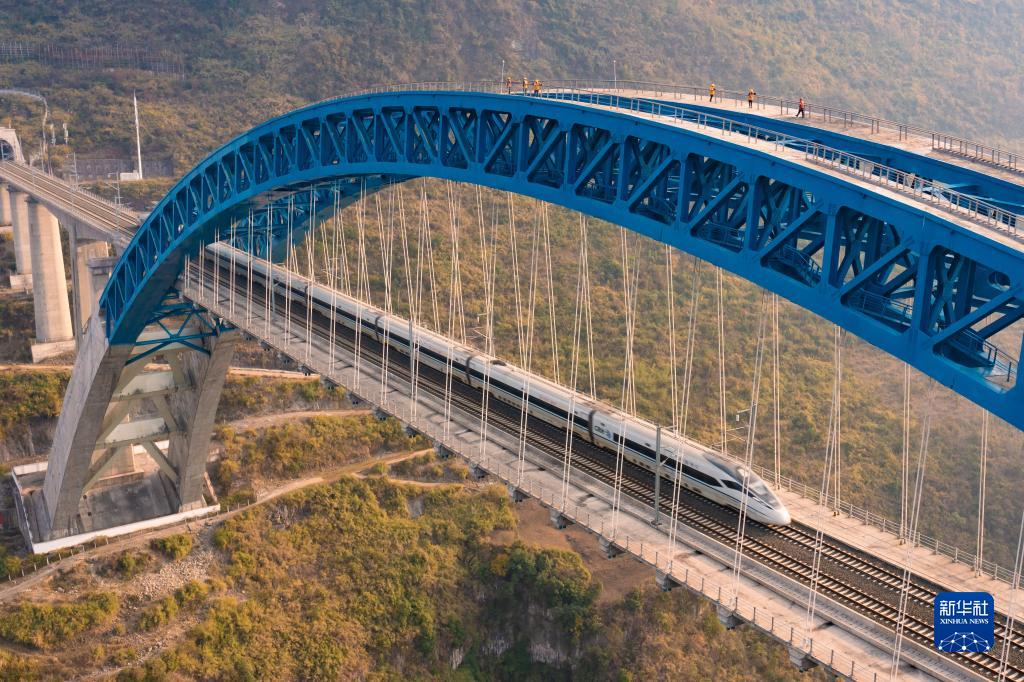 成貴高鐵鴨池河特大橋橫跨貴州省黔西市境內的鴨池河,在地勢險峻的峽谷間,每天約有100多組春運動(dòng)車(chē)穿行經(jīng)過(guò)。在最高處距離河面約277米的大橋上,鐵路職工堅守崗位,嚴格巡檢,對大橋的鋼結構、供電設備、橋梁支座、外包混凝土等進(jìn)行細致檢查,根據列車(chē)運行情況調整軌道線(xiàn)路的幾何尺寸、進(jìn)行鋼軌探傷等作業(yè),全力保障春運期間動(dòng)車(chē)組安全通過(guò)。