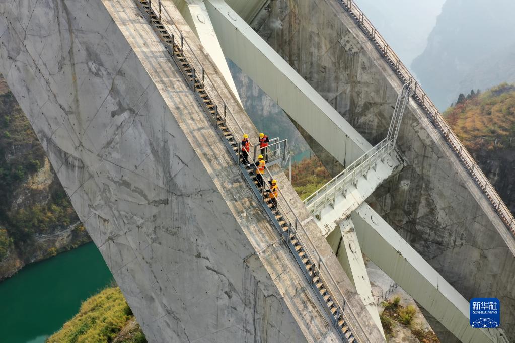 成貴高鐵鴨池河特大橋橫跨貴州省黔西市境內的鴨池河,在地勢險峻的峽谷間,每天約有100多組春運動(dòng)車(chē)穿行經(jīng)過(guò)。在最高處距離河面約277米的大橋上,鐵路職工堅守崗位,嚴格巡檢,對大橋的鋼結構、供電設備、橋梁支座、外包混凝土等進(jìn)行細致檢查,根據列車(chē)運行情況調整軌道線(xiàn)路的幾何尺寸、進(jìn)行鋼軌探傷等作業(yè),全力保障春運期間動(dòng)車(chē)組安全通過(guò)。