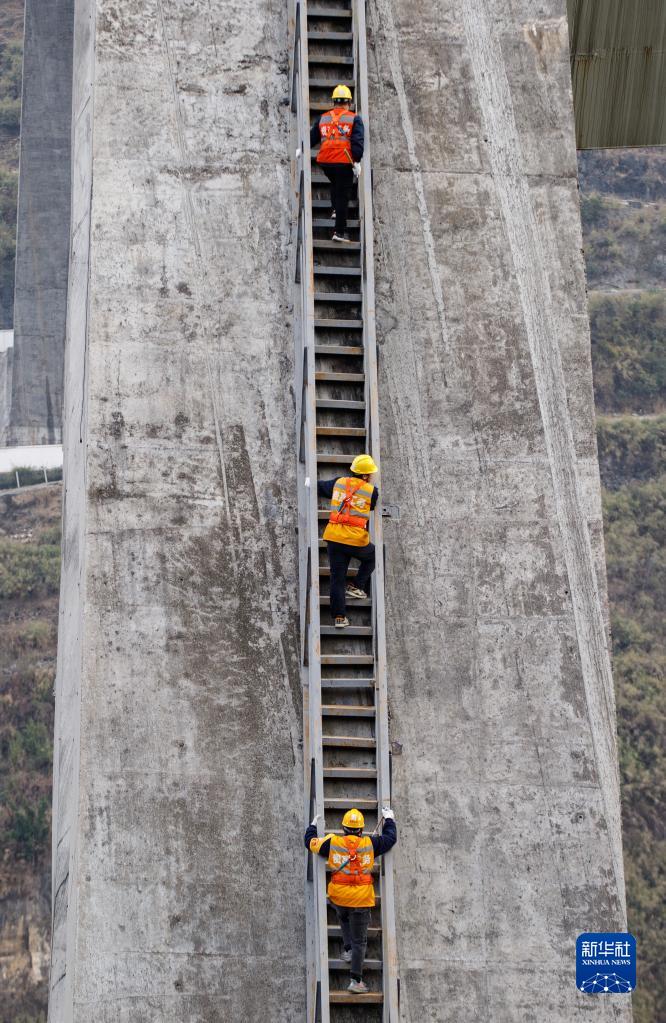 1月10日,貴陽(yáng)高鐵工務(wù)段工作人員在大橋上攀爬。