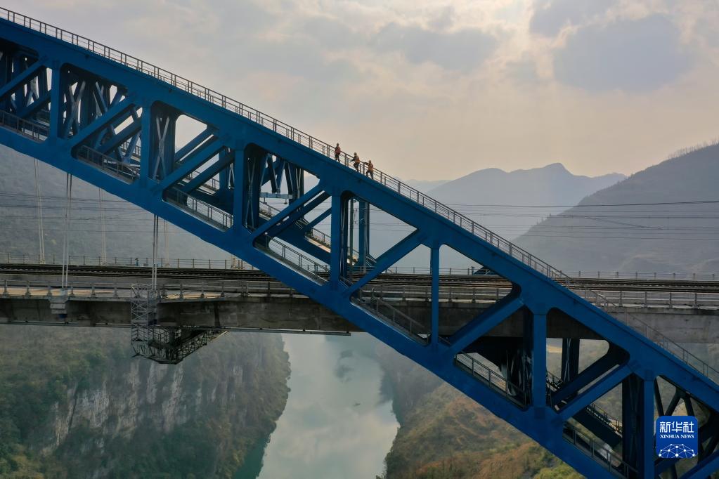 成貴高鐵鴨池河特大橋橫跨貴州省黔西市境內的鴨池河,在地勢險峻的峽谷間,每天約有100多組春運動(dòng)車(chē)穿行經(jīng)過(guò)。在最高處距離河面約277米的大橋上,鐵路職工堅守崗位,嚴格巡檢,對大橋的鋼結構、供電設備、橋梁支座、外包混凝土等進(jìn)行細致檢查,根據列車(chē)運行情況調整軌道線(xiàn)路的幾何尺寸、進(jìn)行鋼軌探傷等作業(yè),全力保障春運期間動(dòng)車(chē)組安全通過(guò)。