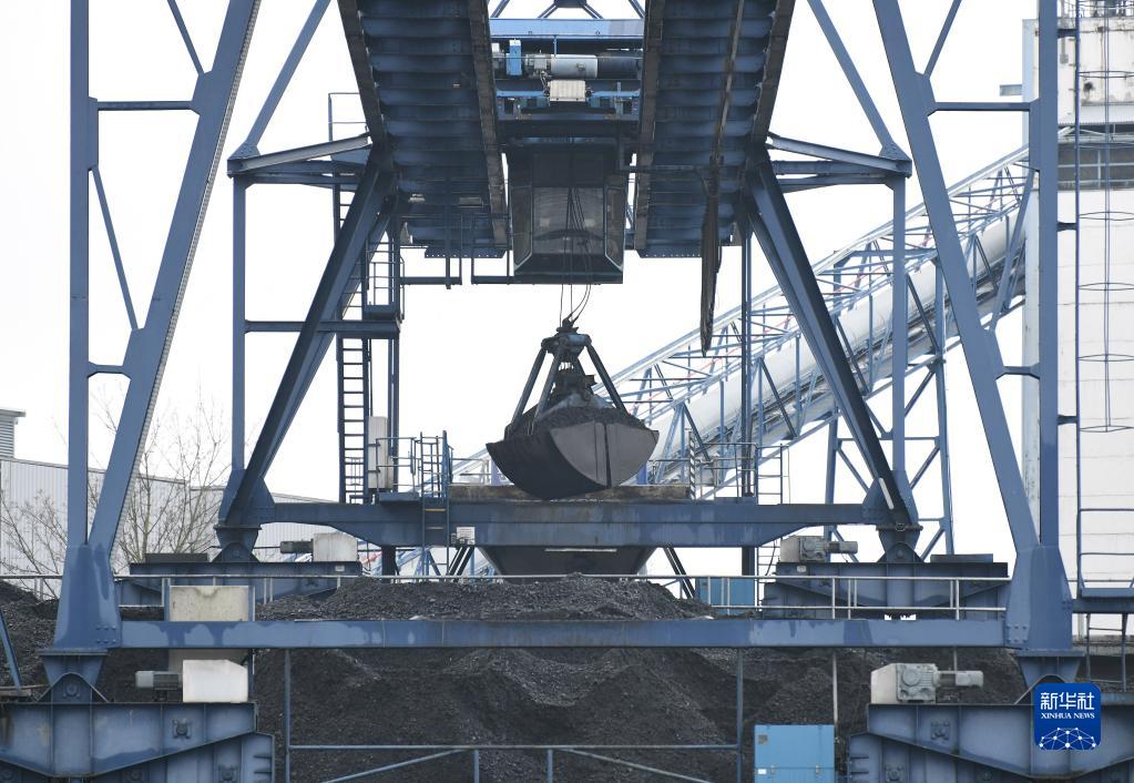 1月9日,德國柏林一家熱電廠(chǎng)的機械設備在煤炭堆場(chǎng)作業(yè)。