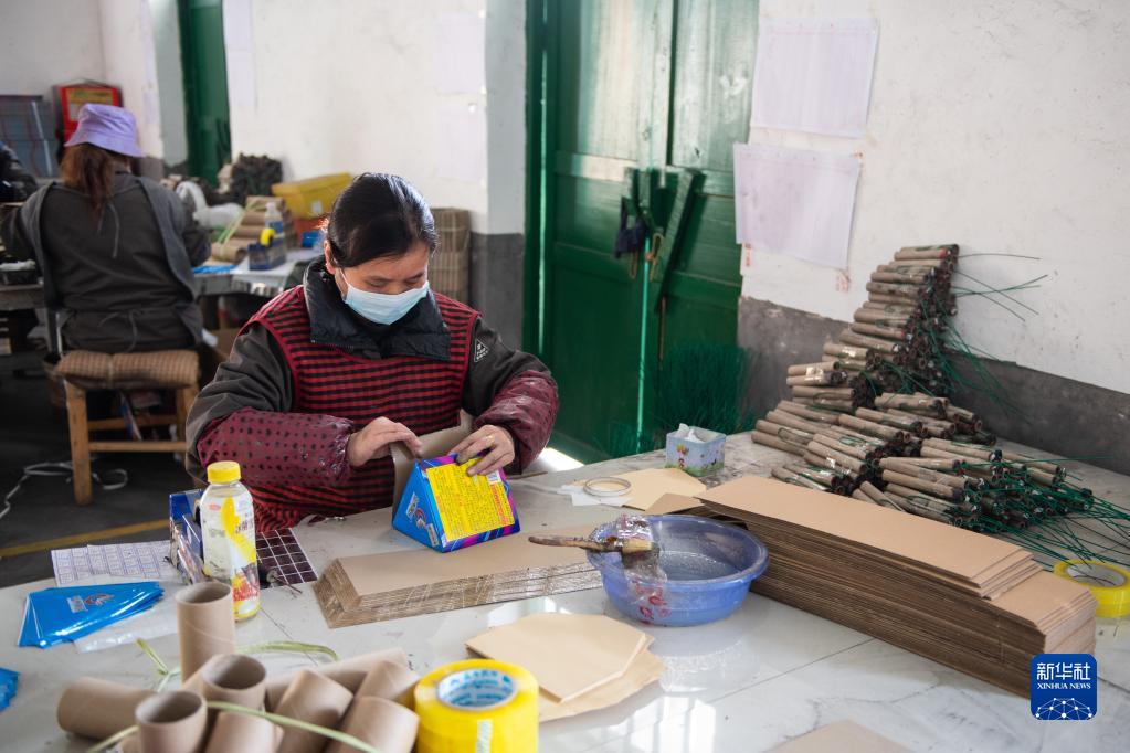 1月11日,在瀏陽(yáng)市大瑤鎮一花炮車(chē)間,工作人員在制作花炮。