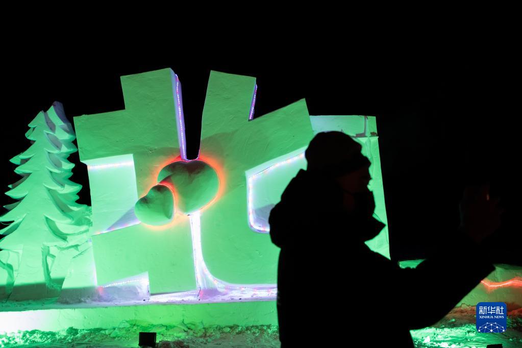 1月7日,游客在黑龍江省漠河市北極村冰雪童話(huà)世界內游玩。
