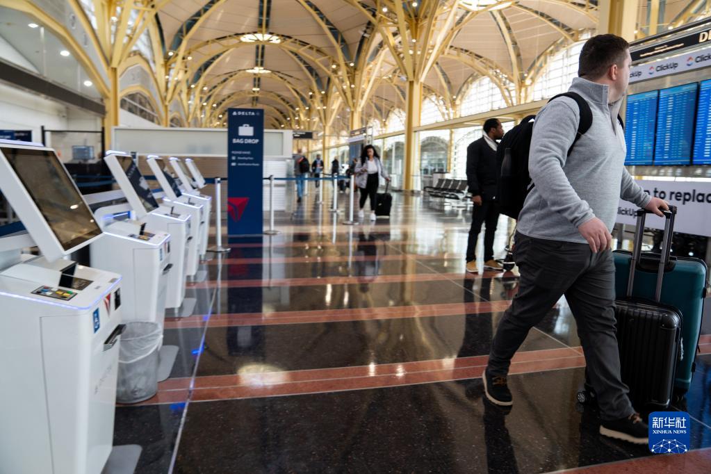 這是1月11日在美國弗吉尼亞州阿靈頓的里根國家機場(chǎng)拍攝的值機柜臺。新華社記者 劉杰 攝