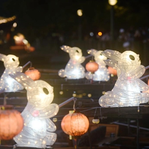 “玉兔燈”點(diǎn)亮杭州西湖