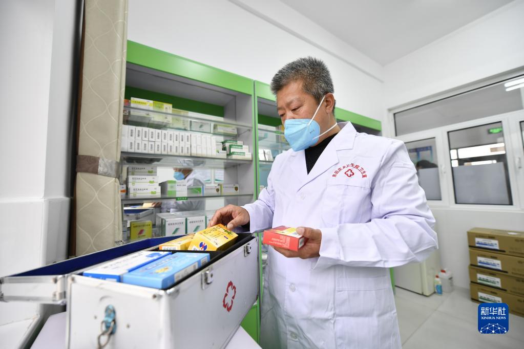1月11日,河北省唐山市豐南區王打刁村“農村巡診小分隊”村醫孫慶良在村衛生室內準備巡診所需藥品。