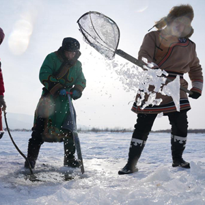 赫哲族是我國人口較少民族之一,世居黑龍江、烏蘇里江、松花江流域,因地處祖國東方,被稱(chēng)為“守望太陽(yáng)的民族”。春節臨近,在赫哲族聚居區之一黑龍江省撫遠市,一些赫哲族群眾開(kāi)展冰湖冬捕、雪地“頂杠”、“魚(yú)王角力”等活動(dòng),展現赫哲族的傳統民俗。