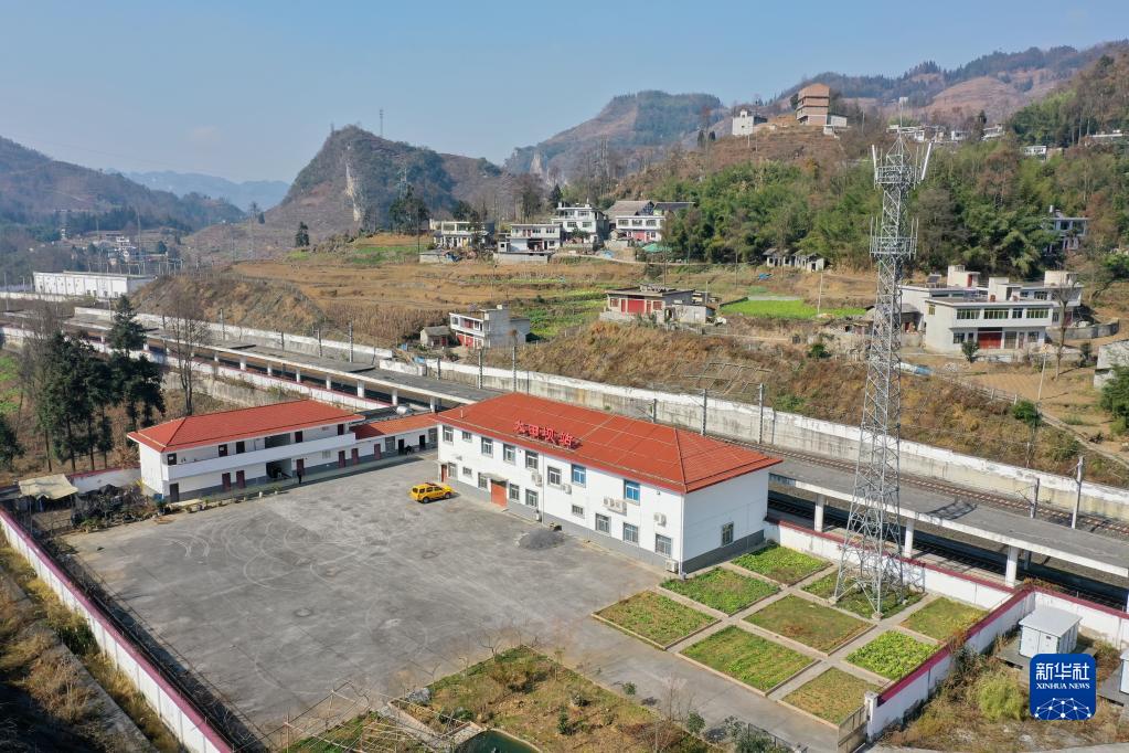 大山深處的大田壩車(chē)站(1月11日攝,無(wú)人機照片)。