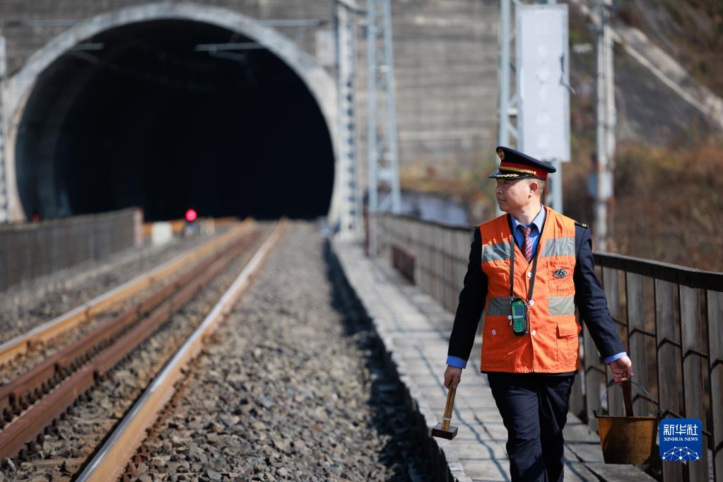毛忠輝在去刷道岔油的路上(1月11日攝)。