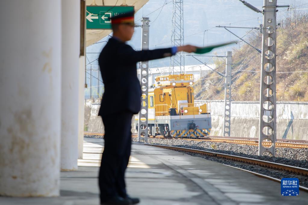 毛忠輝在大田壩車(chē)站內接發(fā)列車(chē)(1月11日攝)。