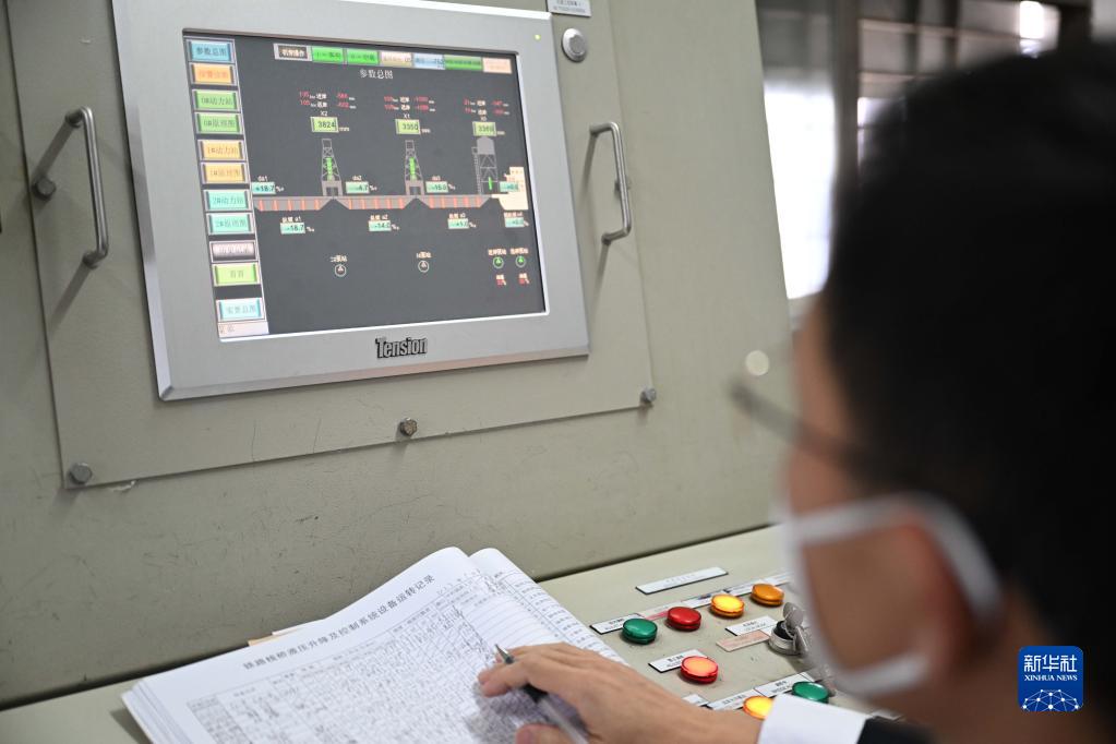 在廣東徐聞的粵海鐵路輪渡北港碼頭,熊美周在棧橋班組工作間記錄設備數據(1月8日攝)。
