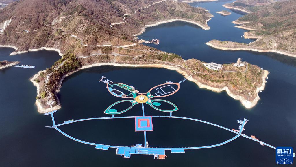 1月12日拍攝的貴州省羅甸縣紅水河畔的浮橋(無(wú)人機照片)。