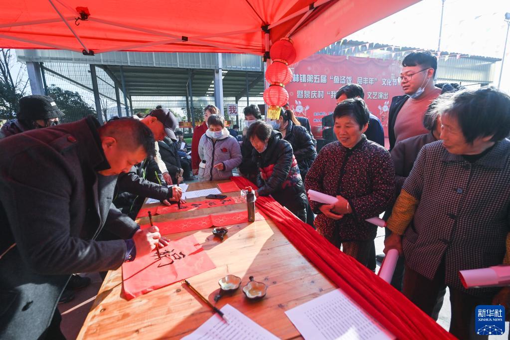 當日,浙江省湖州市吳興區東林鎮的水鄉“魚(yú)湯飯 品豐年”迎春活動(dòng)在泉慶村舉辦,活動(dòng)包括清塘捕魚(yú),魚(yú)湯飯、魚(yú)圓魚(yú)餅、刺毛圓子、手作年糕等年味美食的制作及品嘗,還有歌舞表演、非遺柳編現場(chǎng)展示、書(shū)法愛(ài)好者寫(xiě)春聯(lián)送祝福等。