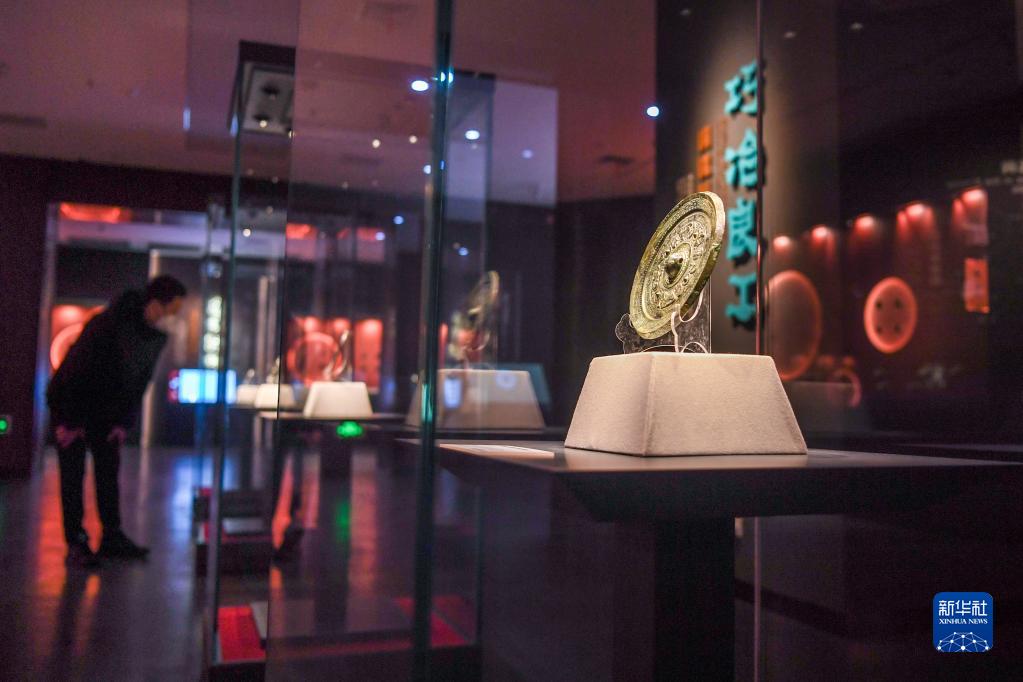 1月12日,觀(guān)眾在大云山漢王陵博物館銅鏡展區內參觀(guān)。